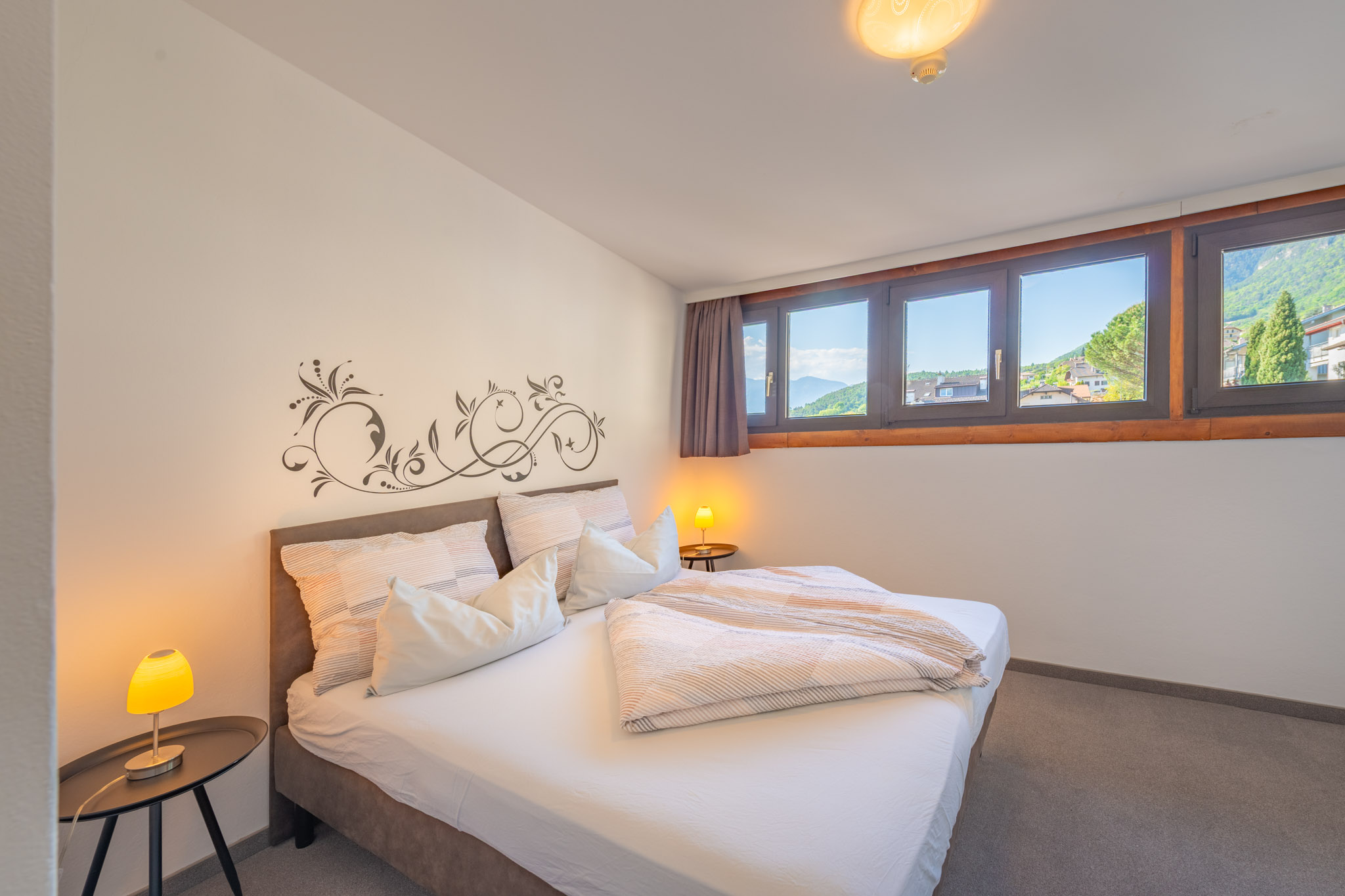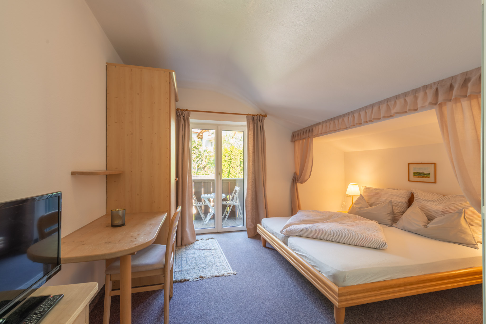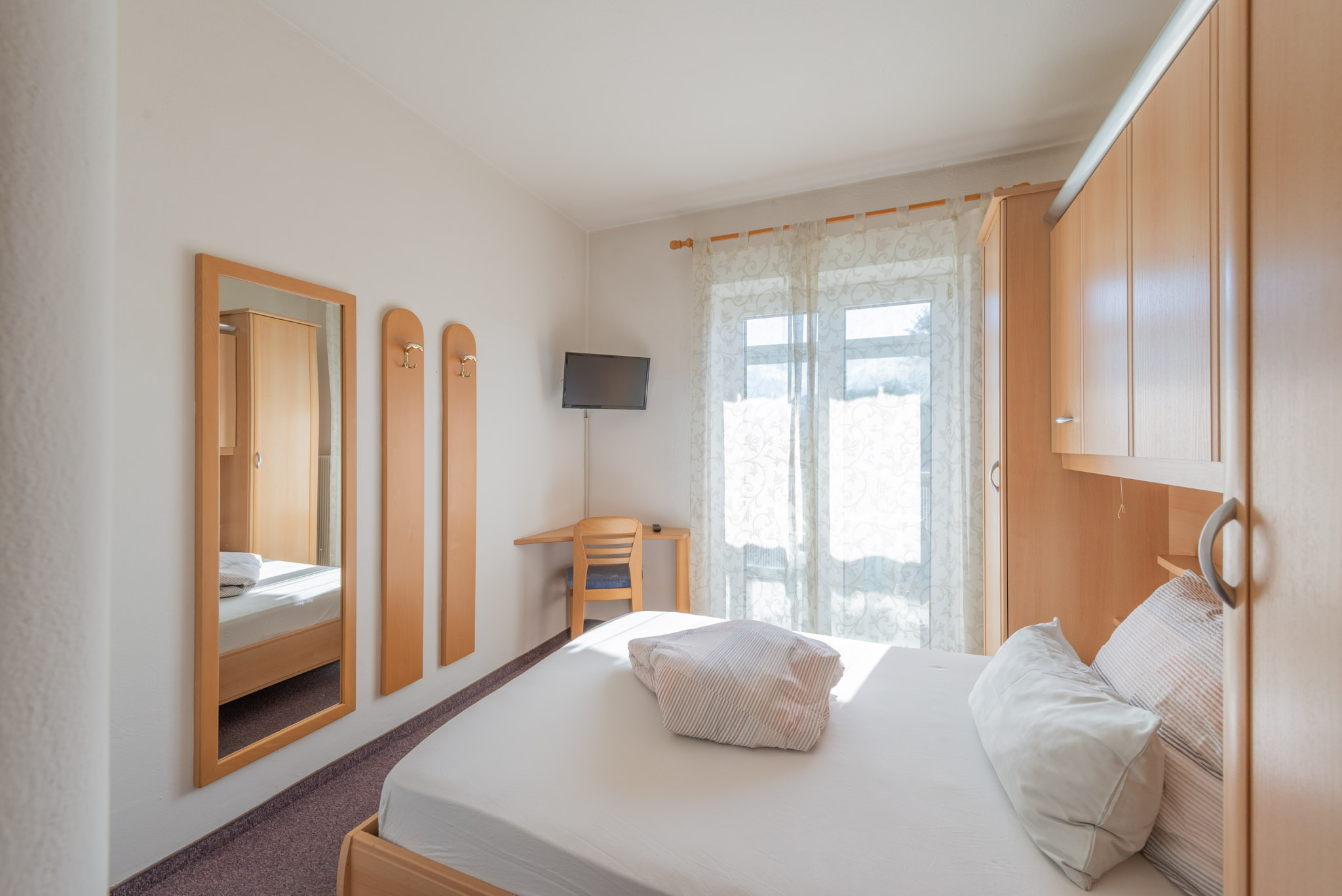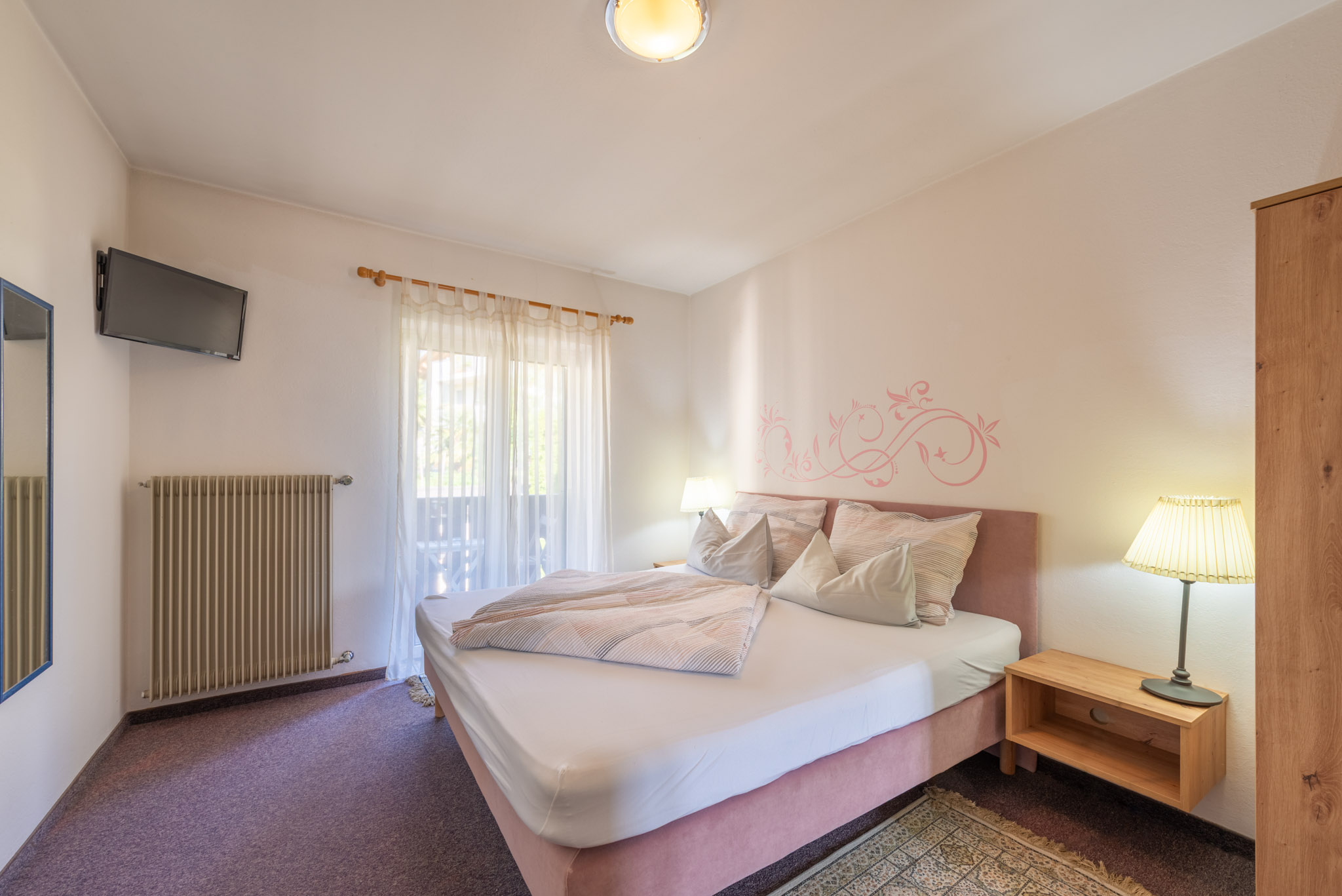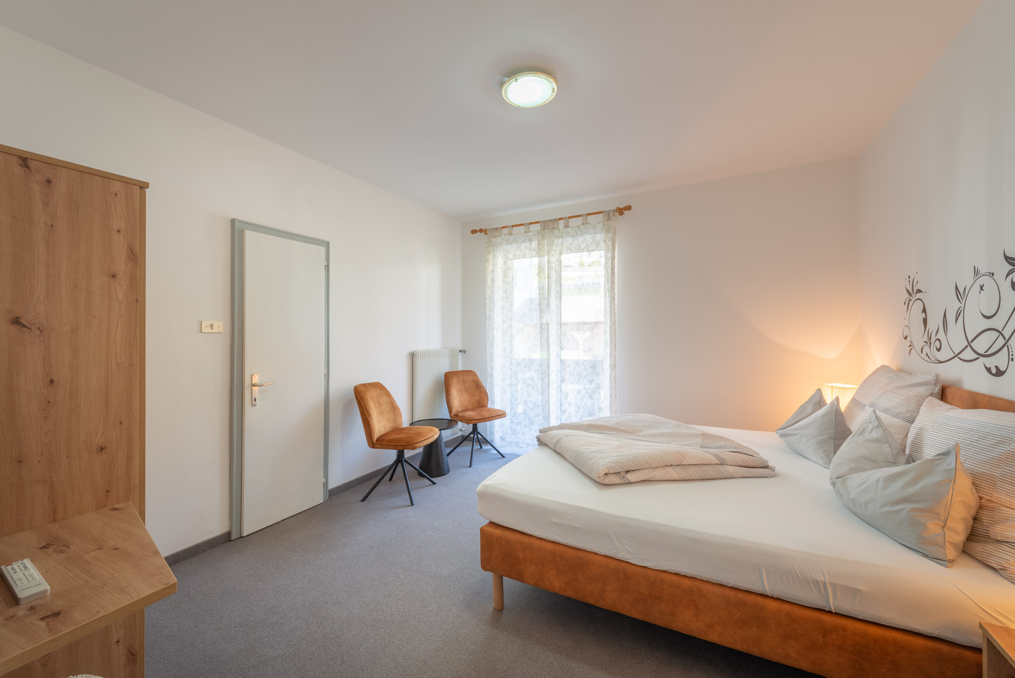 Das Haus bietet gemütliche, individuell eingerichtete Zimmer und komfortable Suiten, die auch als geräumige Familienzimmer genutzt werden können. Alle Zimmer sind mit Dusche, WC, Balkon und TV ausgestattet.